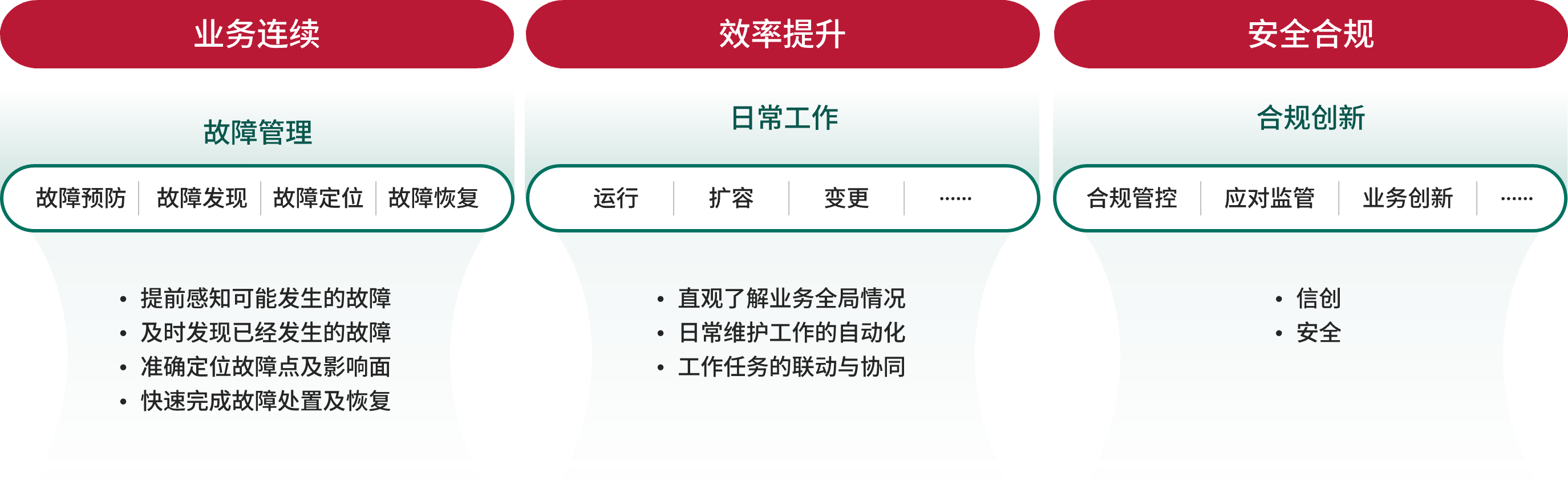 数据中心承载着金融企业最为核心的业务,其业务连续性对于社会生成和国民经济影响重大。如何通过智能化、大数据手段实现故障第一时间发现、定位及处置是数据中心运维能力跃迁的关键。
